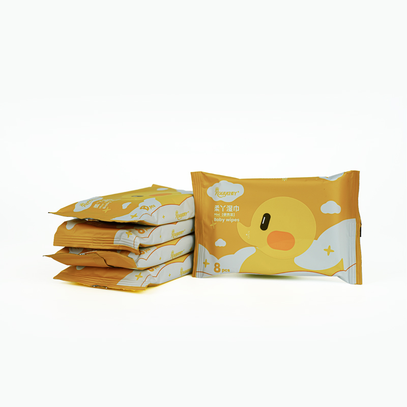 Portable Water-Based Baby Wipes 8pcs Ultra Mini Travel Pack Customizable Plant-Based Skin-Friendly Wholesale Solution